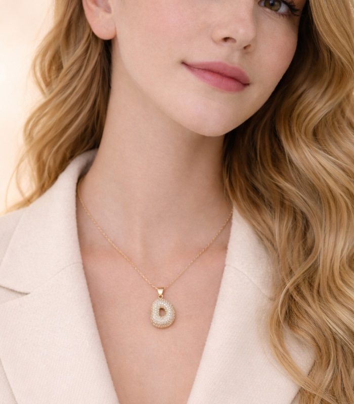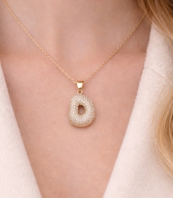 D Harfli Balon Kolye balon harf tasarımıyla modern ve eğlenceli bir stil sunar. Günlük kullanım için uygun olan bu kolye kombinlere hareket katar.