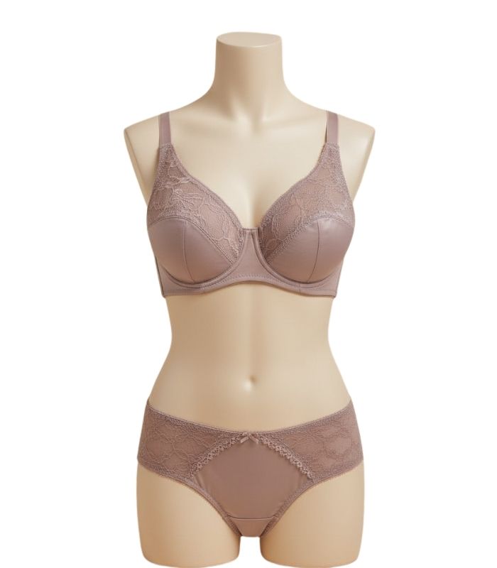 Zarif dantel dokusu ve feminen detaylarıyla romantik bir görünüm sunan şık bir takım.