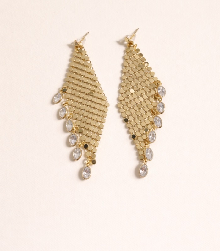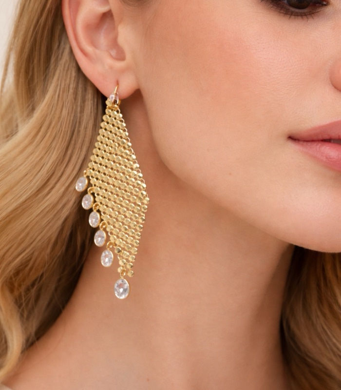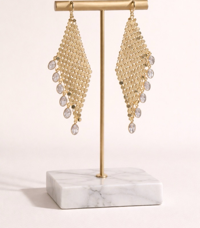 Petek formu ve altın tonuyla modern bir görünüm sunan küpe.