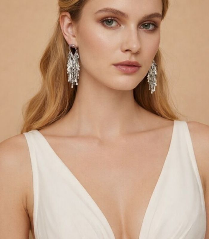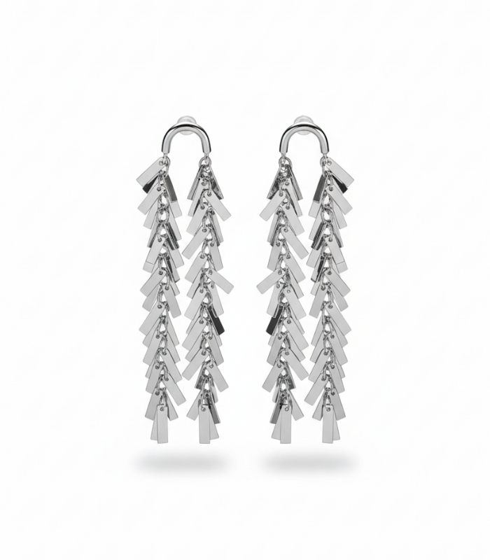 Modern çizgileriyle sade kombinlere uyum sağlayan küpe.