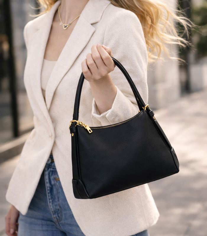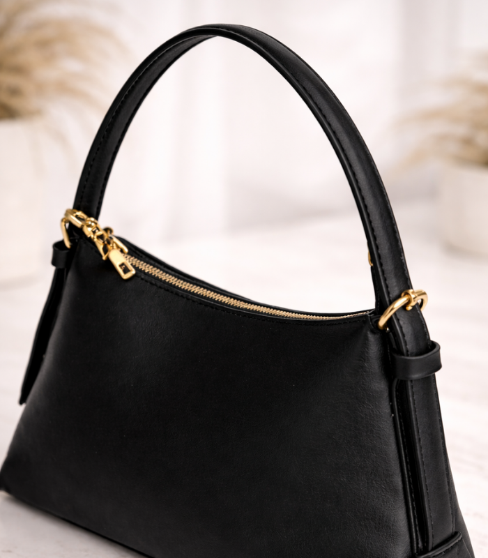 Vienna Siyah Çanta sade ve zamansız tasarımıyla günlük kullanım için ideal bir çantadır. Siyah rengi sayesinde farklı kombinlerle kolayca uyum sağlar ve gün boyu konforlu kullanım sunar.